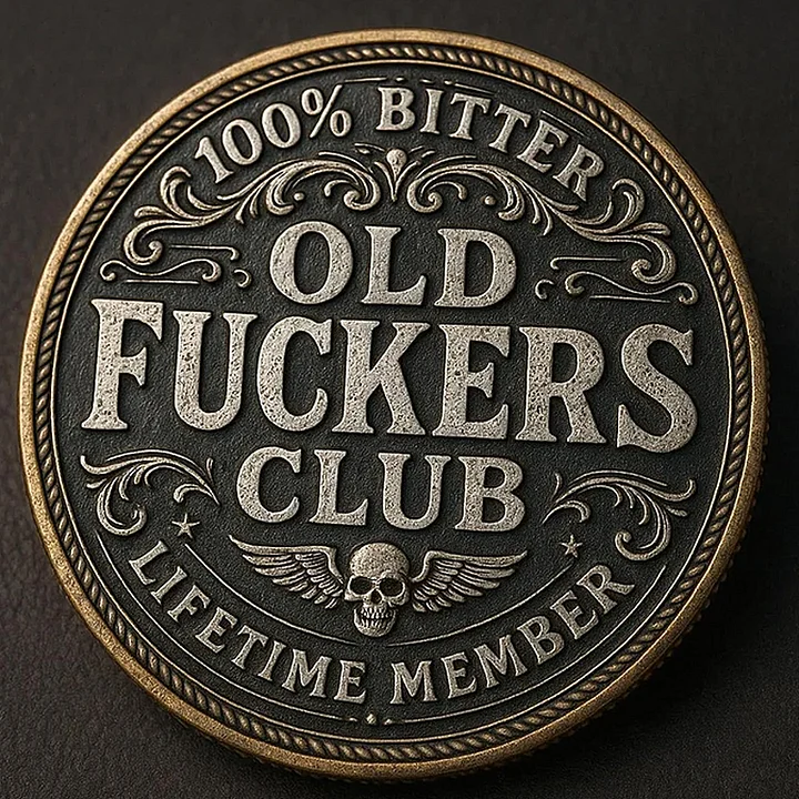 Achten Sie auf die elegante Münze im Foto? Das ist unsere exklusive Gedenkmünze des Bitter Old Fuckers Club – der perfekte Begleiter zu Ihrem Hut.