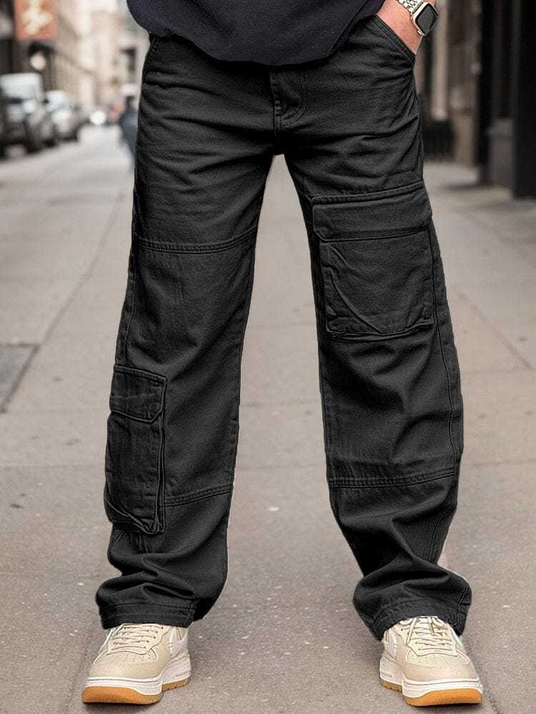 - Details: Straight legs, back elastic waistband, two slant pockets and flap cargo pockets, belt loops