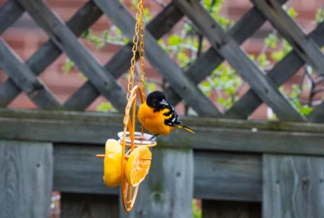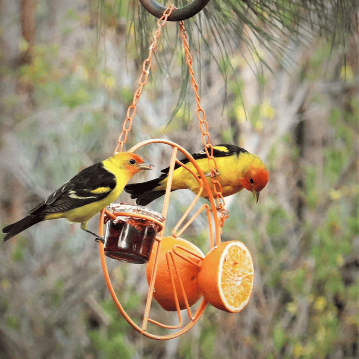 - AN ENTERTAINING ADDITION TO YOUR WINDOW - Hang this oriole feeder outside any window or on your porch or back patio, and then sit back and watch a whole new group of birds come by to visit. Grab your bird-watching book and binoculars because you'll see species of fruit-feeding birds that you've never seen before.