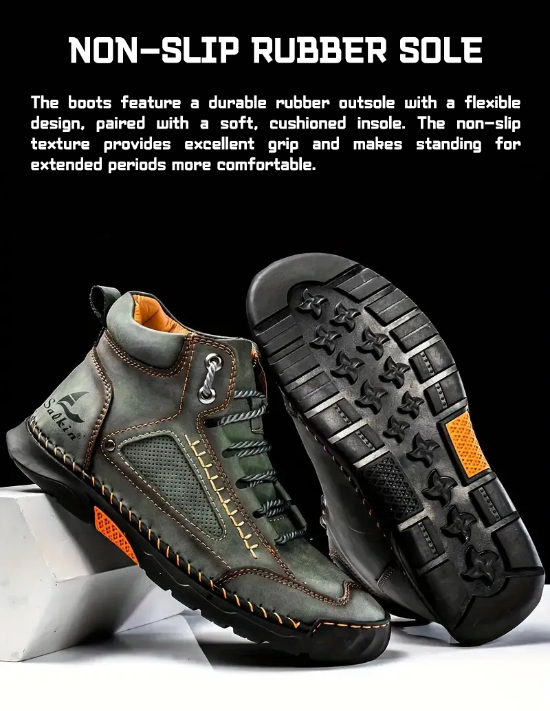 2025 new men's fashion hand-stitched PU leather boots