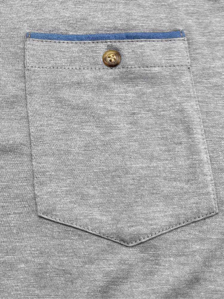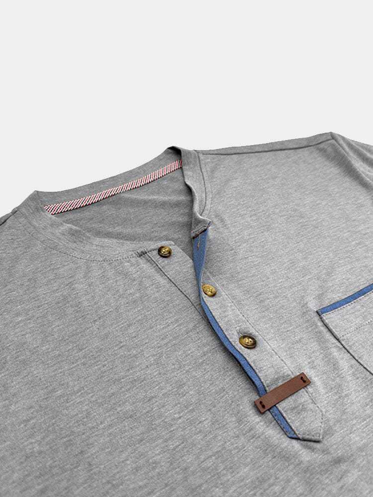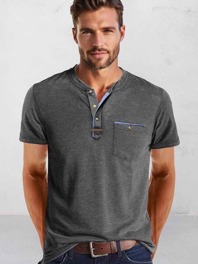 - Details: Kurze Ärmel, Henley-Kragen, eine Brusttasche