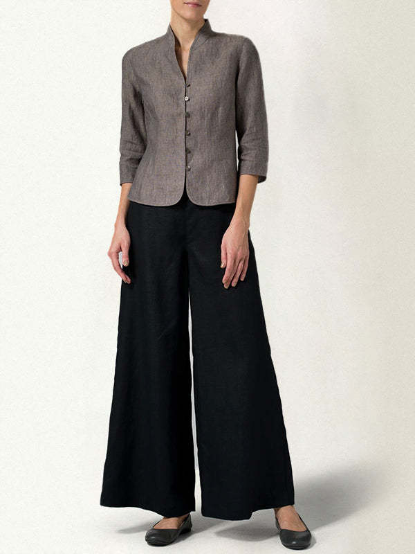 This is a blouse made of high quality cotton and linen. Featuring a loose, minimal design and raw edge details.