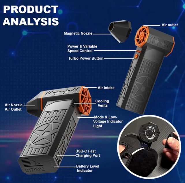 TAILEDEN is equipped with a high-torque brushless motor combined with an optimized hot-air channel, enabling the machine to deliver stable and efficient output. This industrial-grade motor spins at over 100,000 RPM and produces airflow upto eight times that of a typical household hair dryer. Like the core of a power plant, its high rotational speed works together with the precisely engineered air-duct design to generate an extremely powerful stream of hot air, allowing you to quickly blow away snow and accelerate ice melting for truly faster, cleaner snow removal.