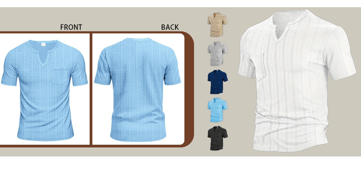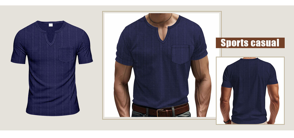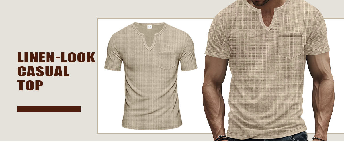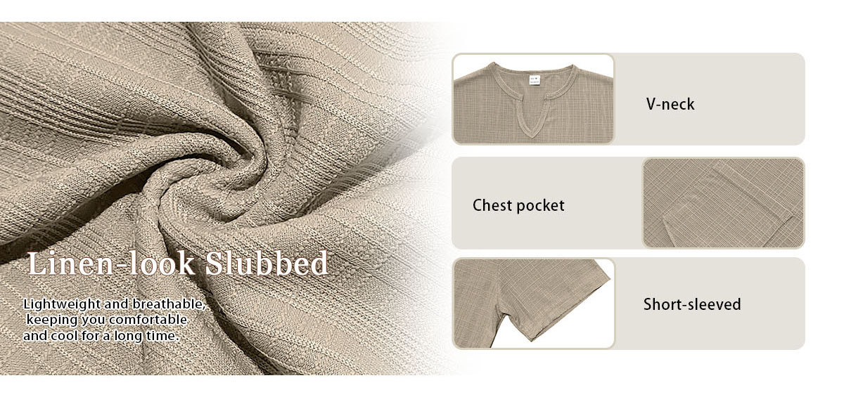 Linen-look Slubbed Loose-fit Breathable Sports Casual V-neck Short-sleeved Top
