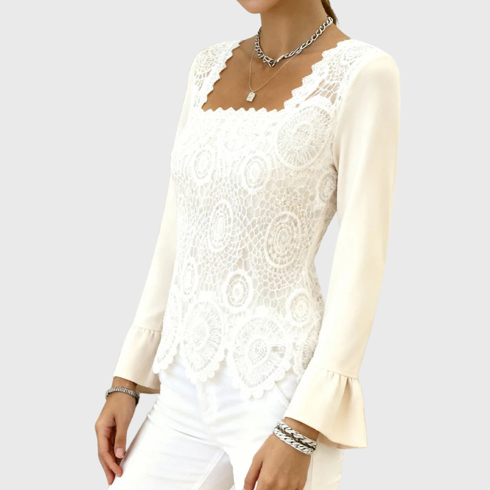 A refined blend of artistic detail and everyday ease, the Marise Blouse features a beautifully patterned front balanced by smooth, flowing sleeves. Its square neckline and softly scalloped hem create a feminine silhouette that feels polished, modern, and effortlessly wearable from work to weekends.