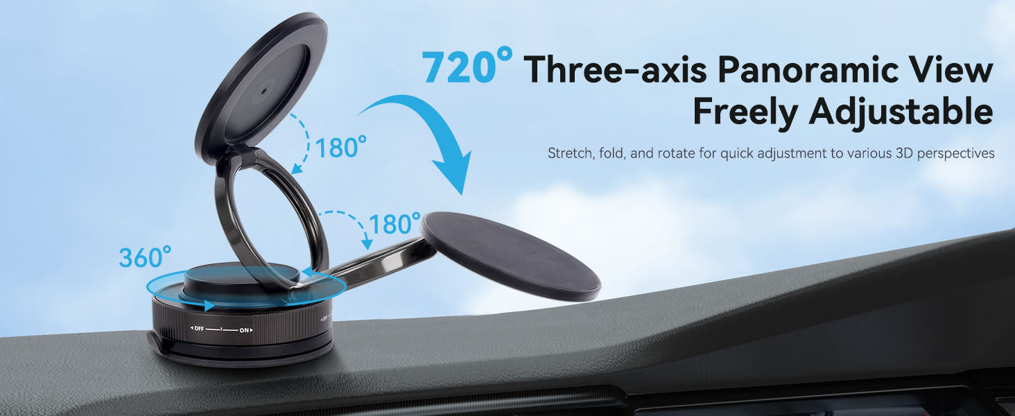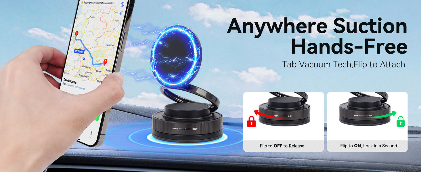 Superior Suction & Unmatched Stability:Equipped with "78LB Superior Suction" technology and a precision-engineered air valve mechanism .this holder delivers "Unrivaled Adhesion & Stability" even on uneven surfaces. The "ON/OFF" switch ensures quick activation, while the "Ultra Stability And Safety" design guarantees secure phone placement—ideal for high-speed drives or active daily use.