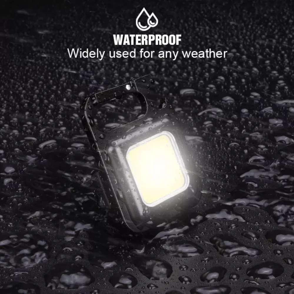【Supper High Bright Light】 This keychain flashlight can emit 500 lumens flashlight lights at maximum. The portable work light emits a flood beam which can light up a big area, The large Technical LED allows this light to be used as a small work light and emergency light.
