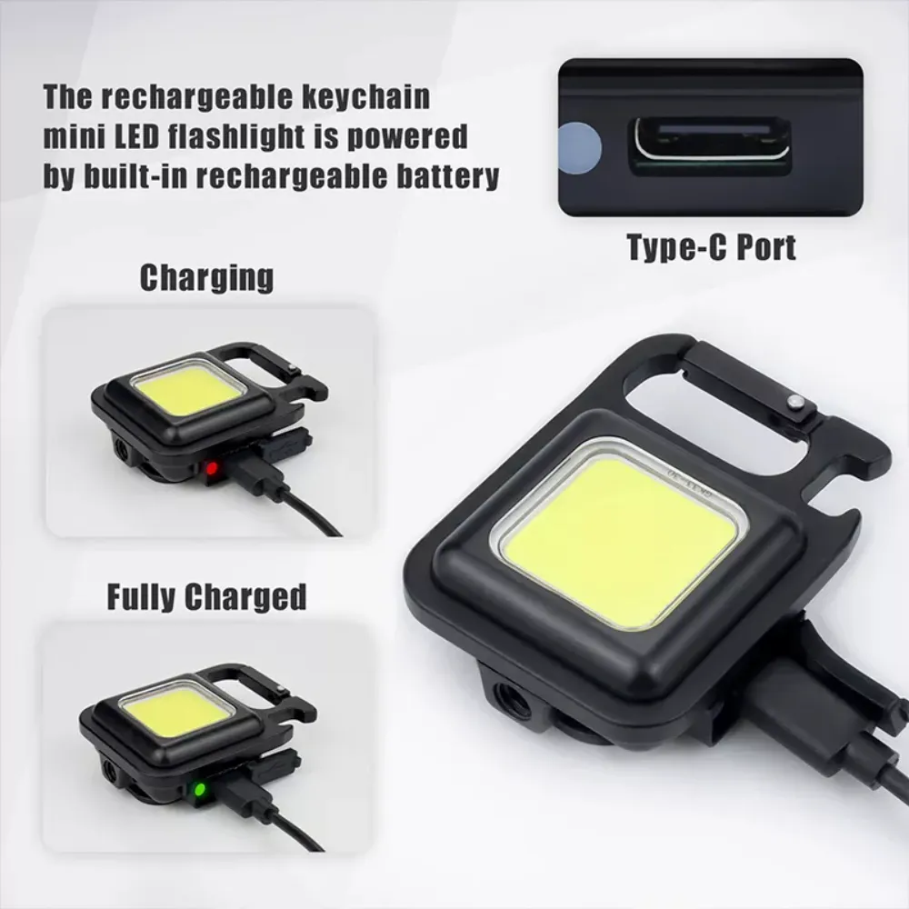 【USB Rechargeable】This USB rechargeable Keychain flashlight is powered by a large capacity built-in battery, micro USB to USB charging cable included. This Micro type C port rechargeable flashlight has a built-in 500mAh rechargeable battery, which can be used for 3-8 hours when fully charged.