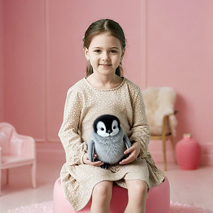 Er wird sich verhalten und agieren wie ein echter Pinguin-Begleiter. Mit über 30 Jahren Erfahrung in der Herstellung lebensechter, plüschiger, tierinspirierter Spielzeuge ist jedes dieser Kunstwerke einzigartig und äußerst realistisch.
