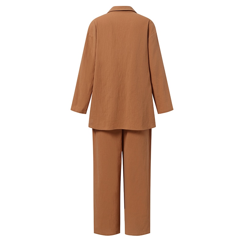 Solid Cotton Linen Women Suits Casual