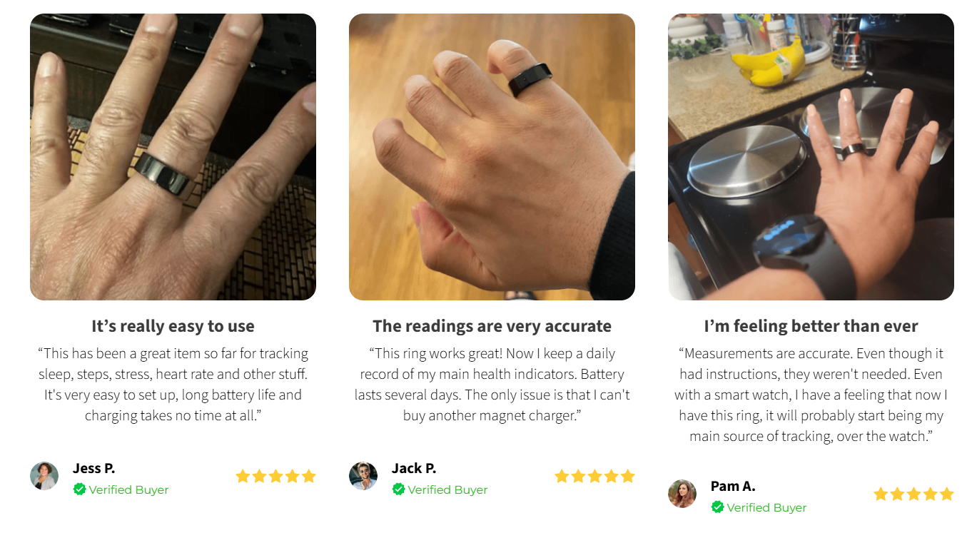 • Convenience: The ring seamlessly integrates with your daily routine, providing health insights without the need for bulky devices or constant check-ins.