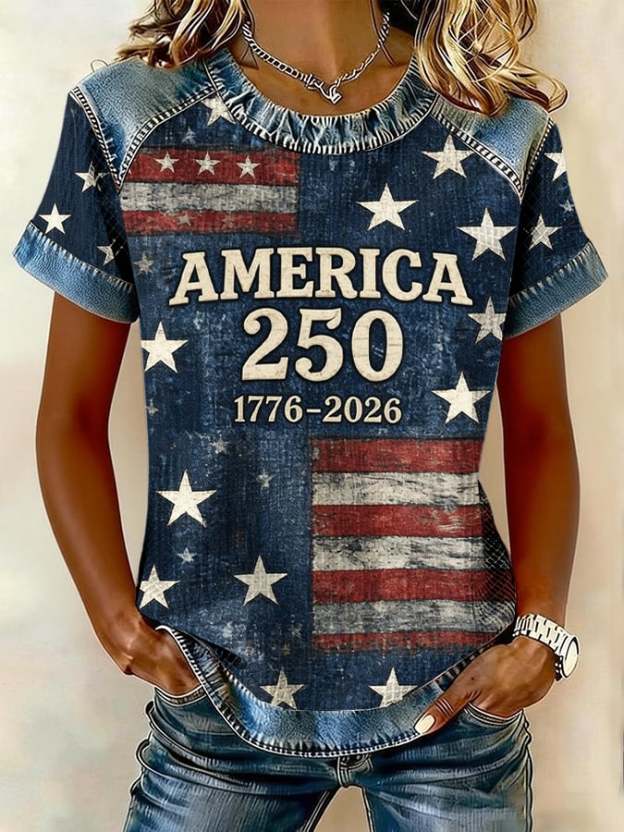 Women's American 250 Patriotic Print Retro Short-Sleeve T-Shirt