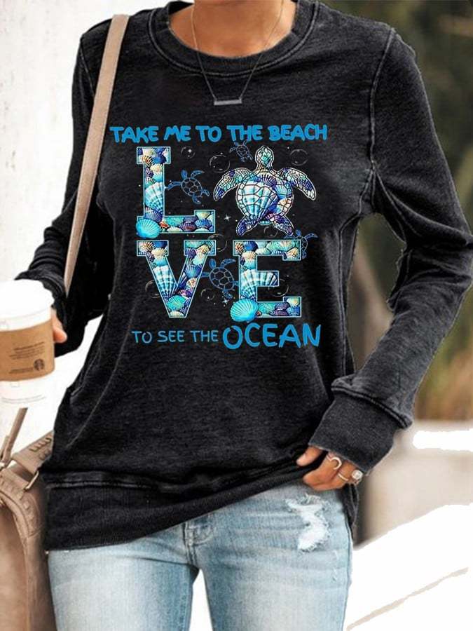 Kaufe 3 und erhalte 15% Rabatt auf das Damen Sweatshirt "Take Me To The Beach To See The Ocean Love Turtle Print"