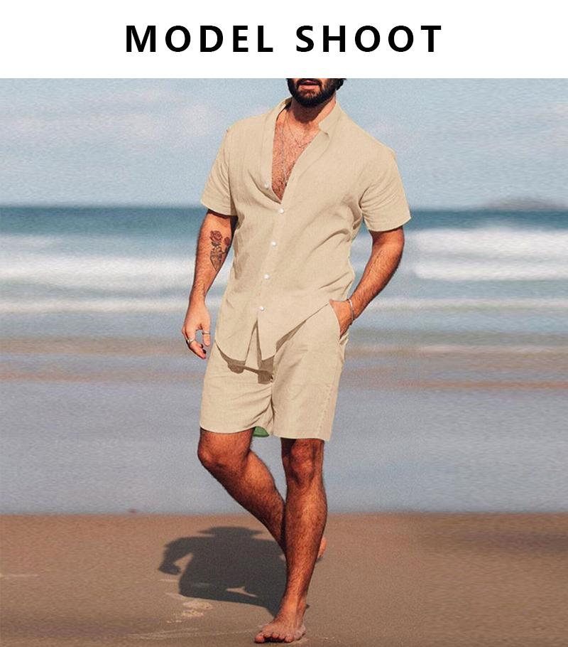 2025 summer men's new lapel short-sleeved shorts two-piece suit