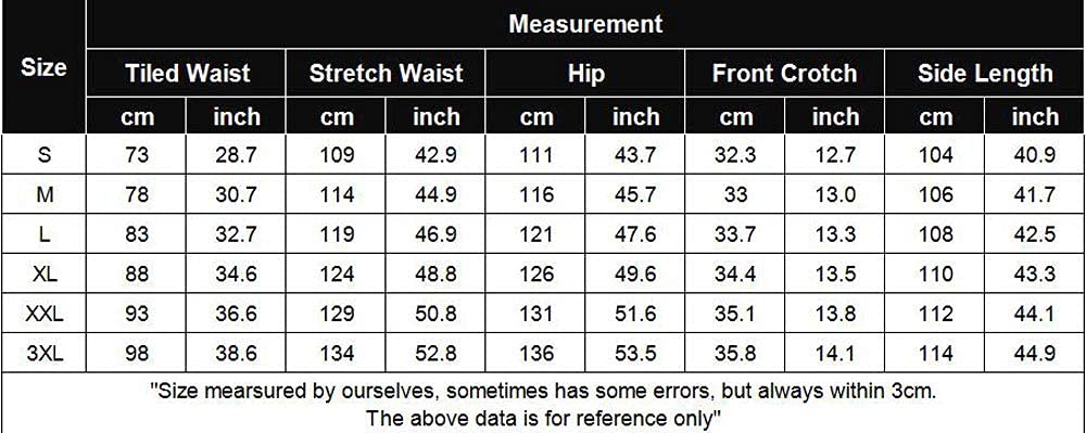 • Notice --- Please check the size information under the product description before ordering, rather than the "size chart" beside the drop down box, please feel free to contact us if you have any problems with the loose fit pants.