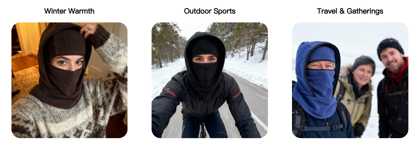 • 3-in-1 Design: Face Mask + Thermal Hood + Neck Warmer