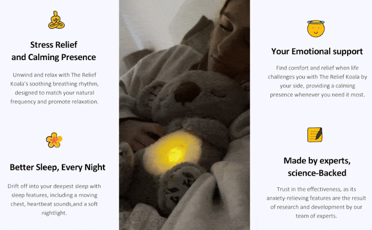 🐨Alleviates Stress: The combination of rhythmic breathing and heartbeat sounds helps reduce tension and anxiety, allowing both Emily and me to unwind after a long day.