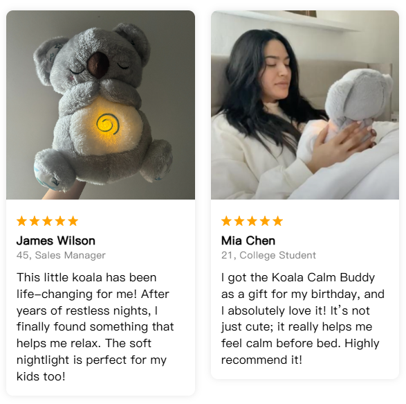 🐨Promotes Better Sleep: With its calming presence, the koala has transformed our bedtime routine. I now fall asleep faster, and Emily no longer struggles to settle down at night.