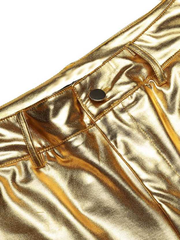 - Design: Straight Leg, Lightweight, Classic four pockets styling. Shinny under the light. Metallic shiny pants.?