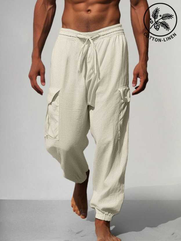 Multi Pockets Cotton Linen Pants