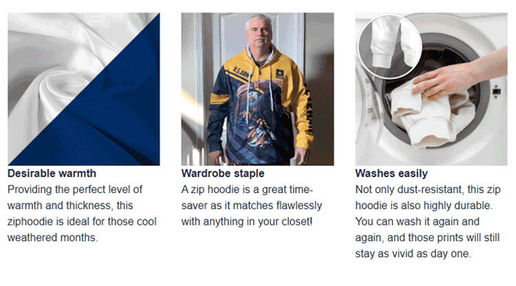 In preparation for this fall, don't miss out on our marveloushooded sweatshirt! You have two in one, since it can beworn as a normal hoodie or a light outer layer. Besidesbeing warm and convenient, our hoodies will also be themost durable and modern-looking item in your closet withtheir high-quality material and stunning prints.