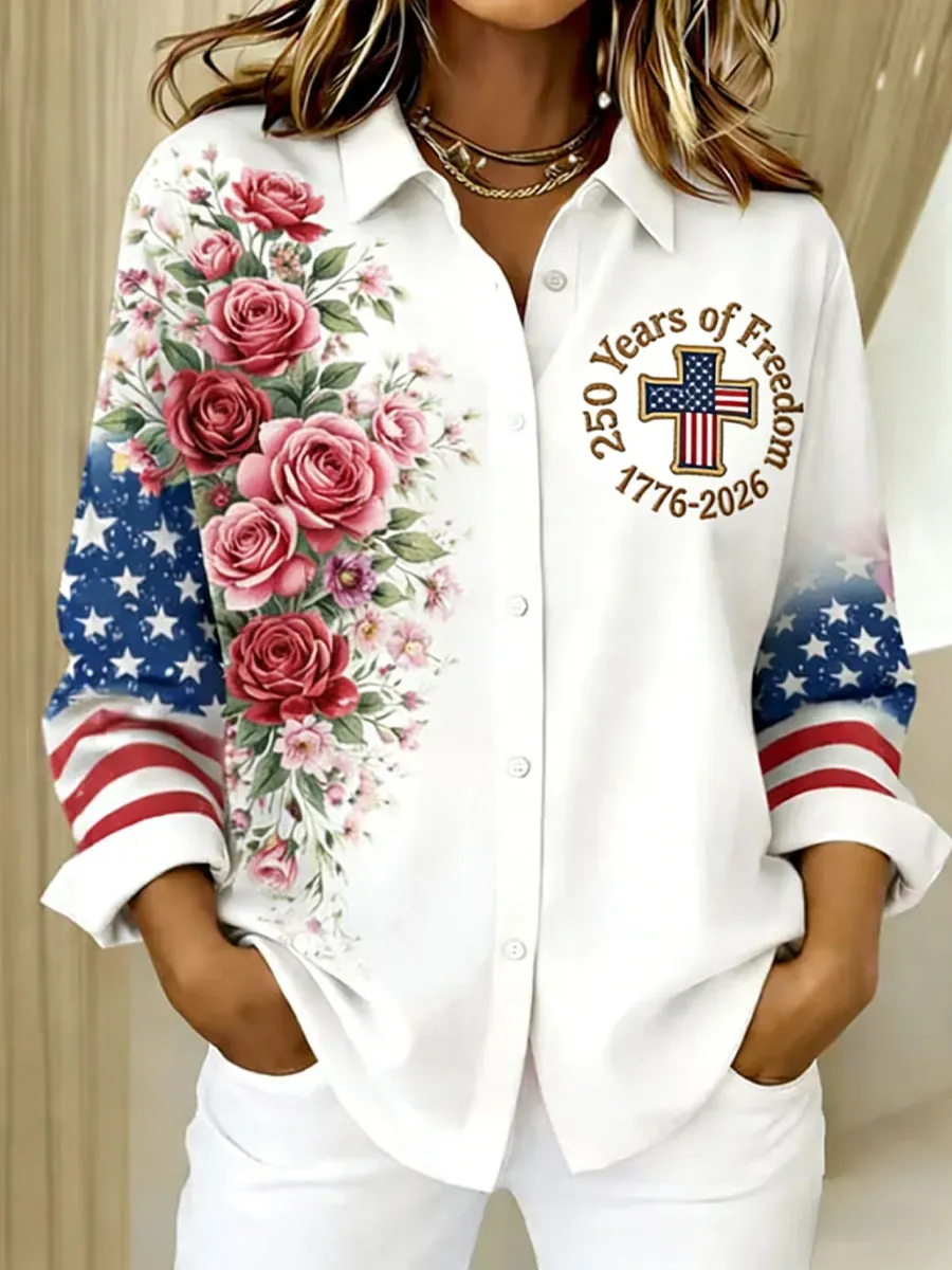 Damen Freizeit Amerikanische 250. Jubiläums Gedenk Druckshirt