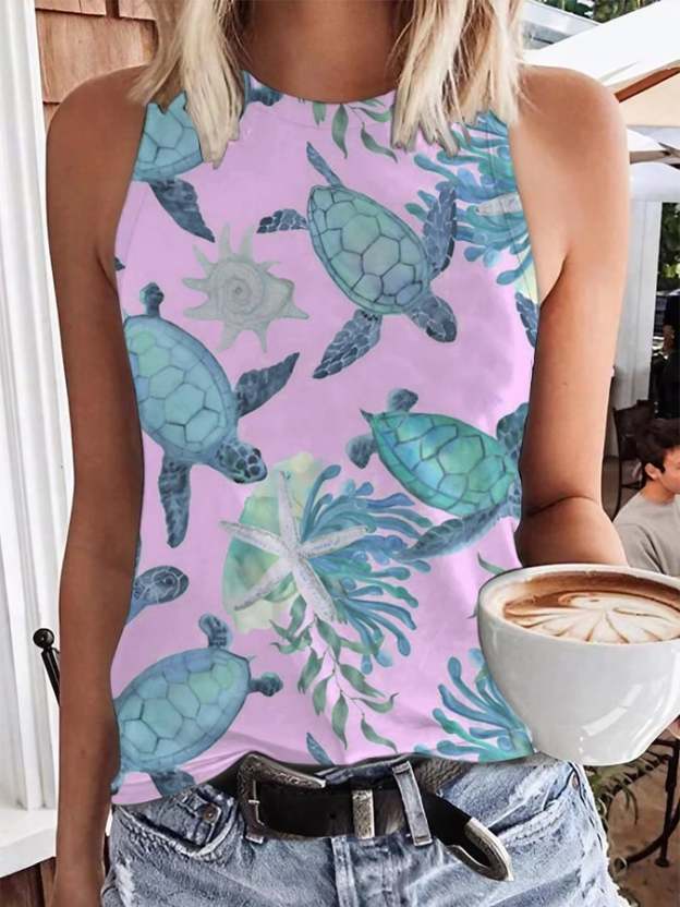 Buy 3 Get 15% Off Women's Hawaiian Turtle Print Casual Tank Top